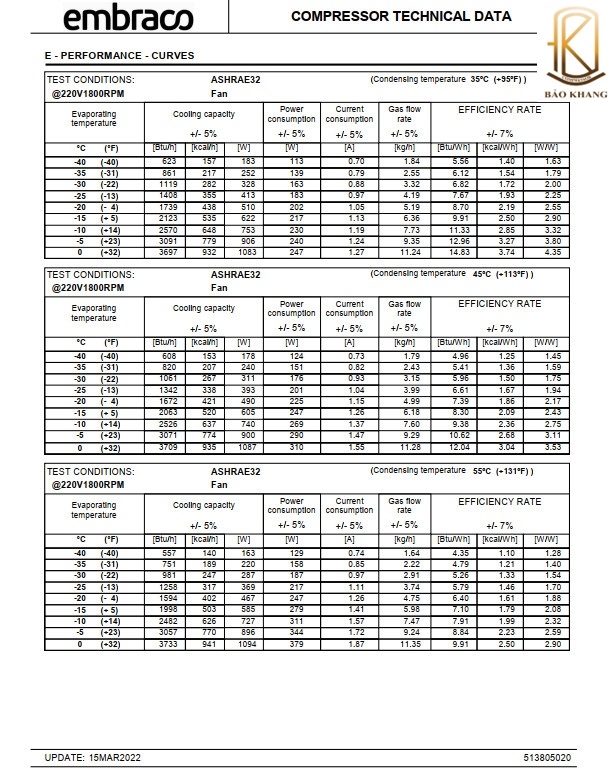 BẢO KHANG chuyên phân phối máy nén Embraco. Cung cấp máy nén khí Tecumseh, thi công, lắp đặt máy nén Embraco, dùng cho hệ thống kho lạnh, máy lạnh công nghiệp, được nhập khẩu chính hãng từ brazil có giấy chứng nhận CO và CQ đầy đủ. Máy nén Embraco được nhiều khách hàng tín nhiệm.