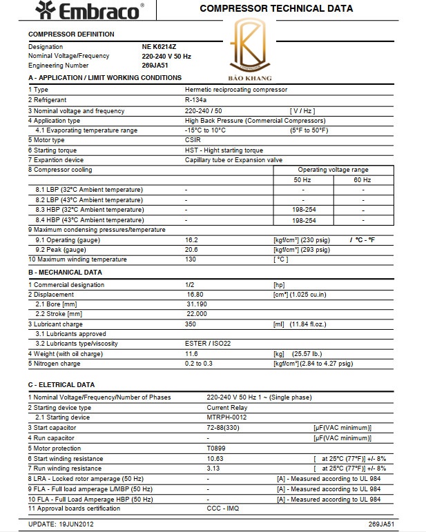 BẢO KHANG chuyên phân phối máy nén Embraco. Cung cấp máy nén khí Tecumseh, thi công, lắp đặt máy nén Embraco, dùng cho hệ thống kho lạnh, máy lạnh công nghiệp, được nhập khẩu chính hãng từ brazil có giấy chứng nhận CO và CQ đầy đủ. Máy nén Embraco được nhiều khách hàng tín nhiệm.