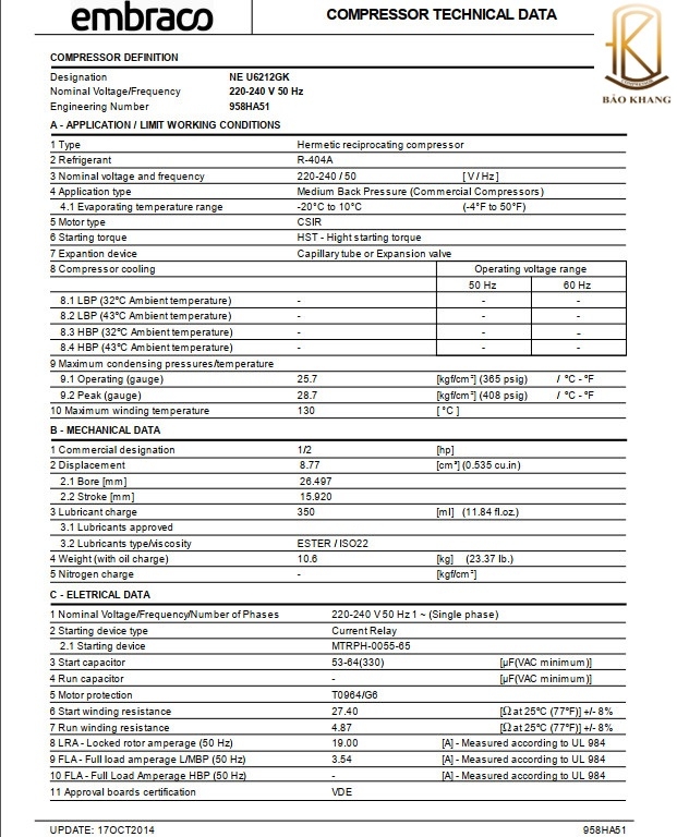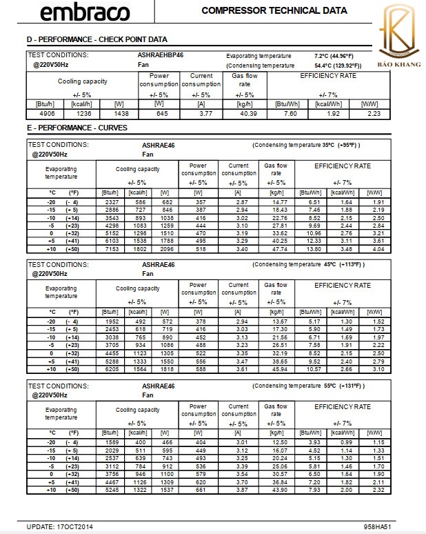 BẢO KHANG chuyên phân phối máy nén Embraco. Cung cấp máy nén khí Tecumseh, thi công, lắp đặt máy nén Embraco, dùng cho hệ thống kho lạnh, máy lạnh công nghiệp, được nhập khẩu chính hãng từ brazil có giấy chứng nhận CO và CQ đầy đủ. Máy nén Embraco được nhiều khách hàng tín nhiệm.