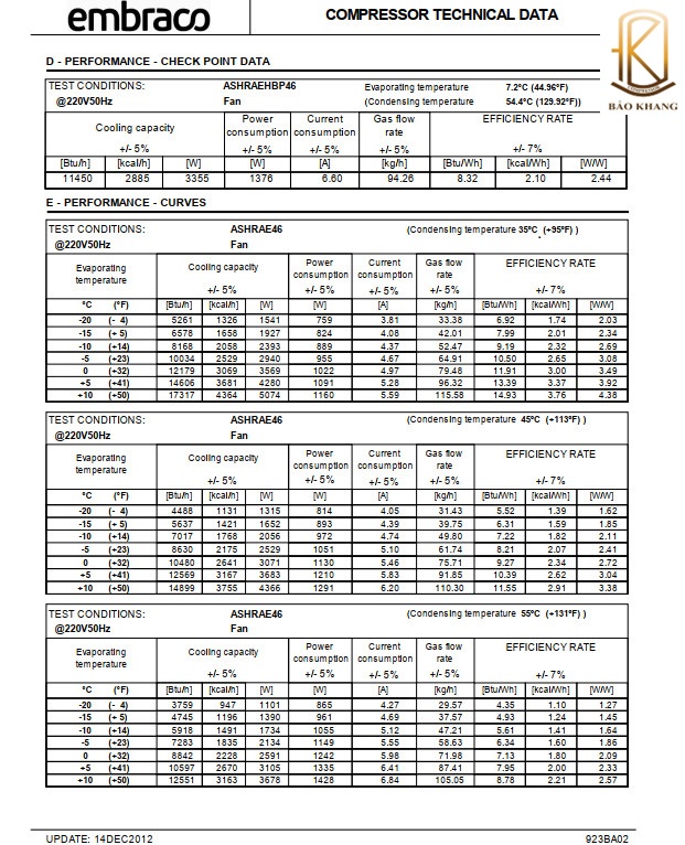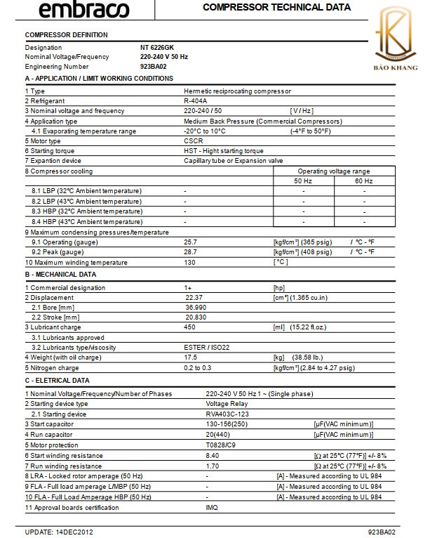 BẢO KHANG chuyên phân phối máy nén Embraco. Cung cấp máy nén khí Tecumseh, thi công, lắp đặt máy nén Embraco, dùng cho hệ thống kho lạnh, máy lạnh công nghiệp, được nhập khẩu chính hãng từ brazil có giấy chứng nhận CO và CQ đầy đủ. Máy nén Embraco được nhiều khách hàng tín nhiệm.