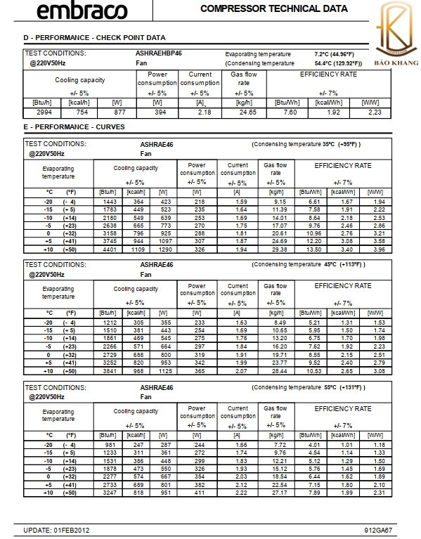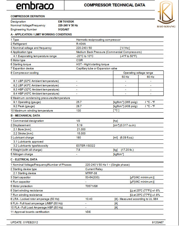 BẢO KHANG chuyên phân phối máy nén Embraco. Cung cấp máy nén khí Tecumseh, thi công, lắp đặt máy nén Embraco, dùng cho hệ thống kho lạnh, máy lạnh công nghiệp, được nhập khẩu chính hãng từ brazil có giấy chứng nhận CO và CQ đầy đủ. Máy nén Embraco được nhiều khách hàng tín nhiệm.