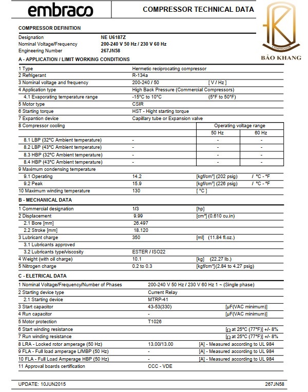 BẢO KHANG chuyên phân phối máy nén Embraco. Cung cấp máy nén khí Tecumseh, thi công, lắp đặt máy nén Embraco, dùng cho hệ thống kho lạnh, máy lạnh công nghiệp, được nhập khẩu chính hãng từ brazil có giấy chứng nhận CO và CQ đầy đủ. Máy nén Embraco được nhiều khách hàng tín nhiệm.