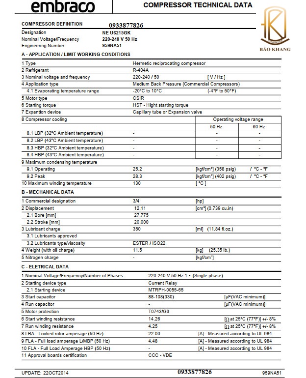 BẢO KHANG chuyên phân phối máy nén Embraco. Cung cấp máy nén khí Tecumseh, thi công, lắp đặt máy nén Embraco, dùng cho hệ thống kho lạnh, máy lạnh công nghiệp, được nhập khẩu chính hãng từ brazil có giấy chứng nhận CO và CQ đầy đủ. Máy nén Embraco được nhiều khách hàng tín nhiệm.